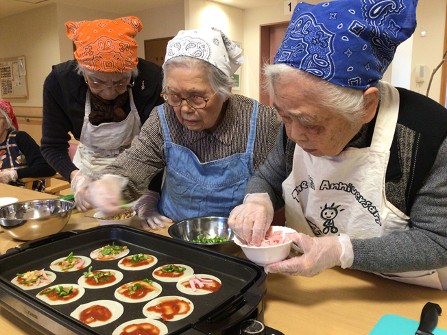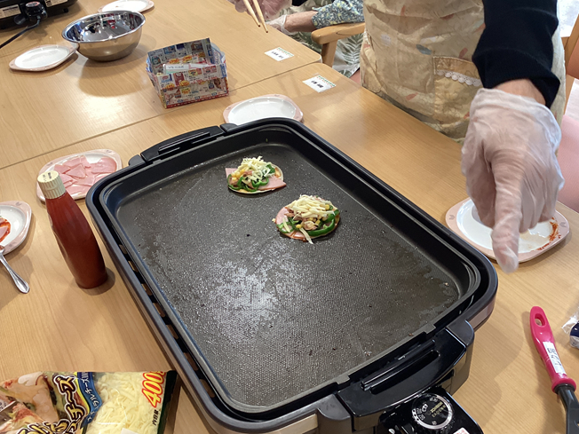 ご利用者の発案で餃子の皮でピザを作ってクリスマスパーティーしました。