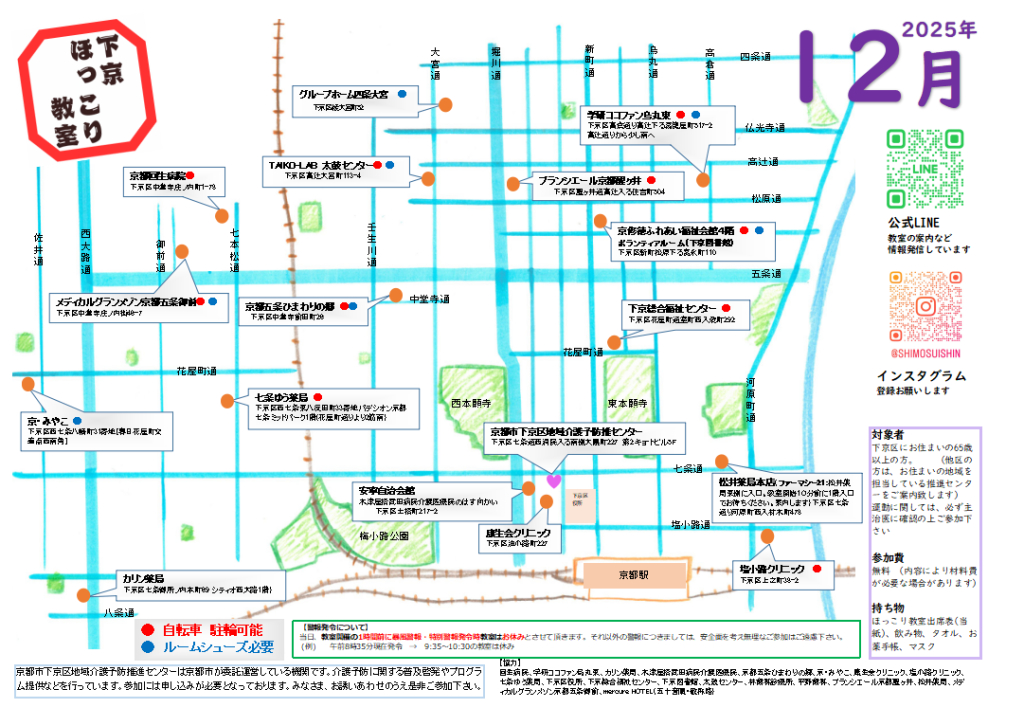 〇 教室参加の際のお茶・水などの水分は必ずご持参ください。