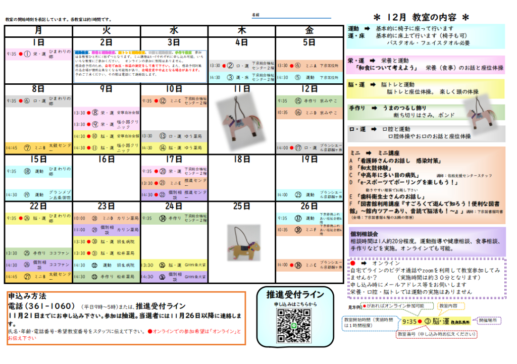 教室のお申込みは全て抽選となり、当選者には後日、連絡させて頂きます。