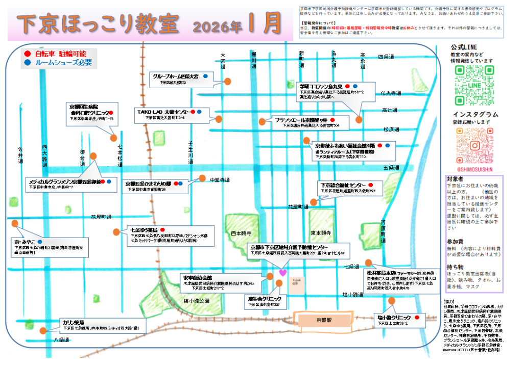 〇 教室参加の際のお茶・水などの水分は必ずご持参ください。
