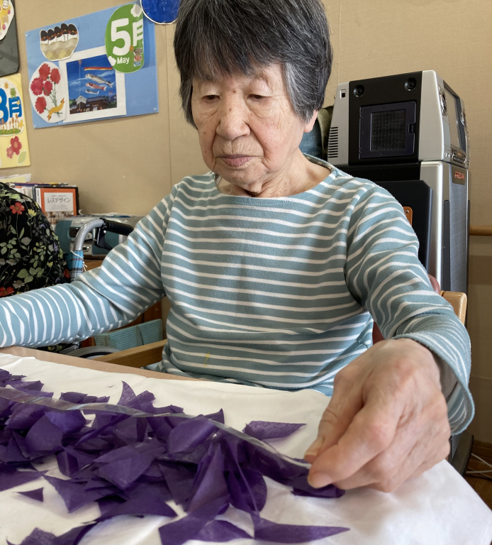 お花紙をちぎって