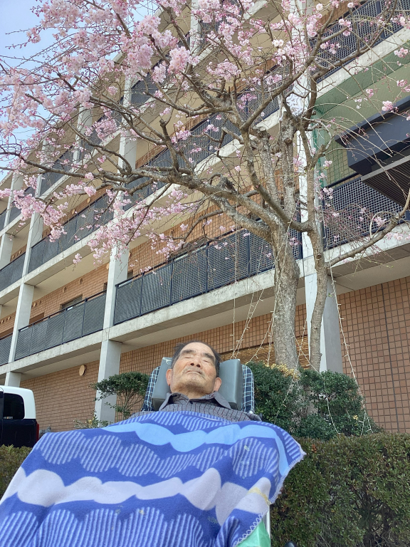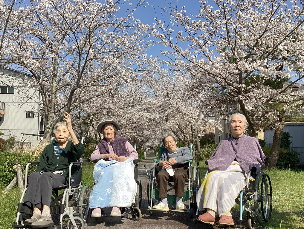 施設周りの桜の木や、近くの御霊神社、駅前にお花見にいきました