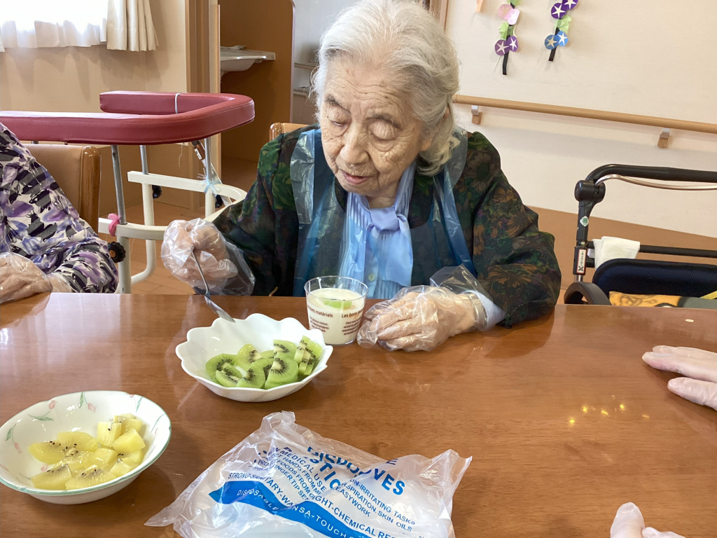 8月、梅枝ユニットではフルーツヨーグルトレクリエーションを行いました!