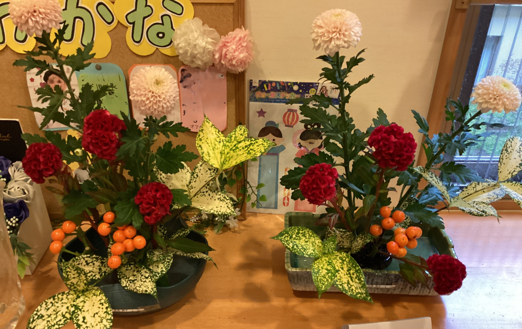 また、この日は生け花教室もあり参加された方の作品も一緒に
