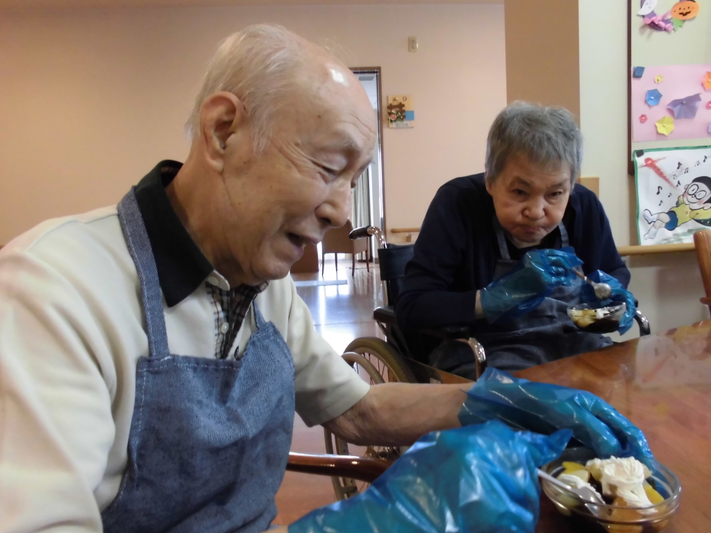 おやつタイムに向けてコーヒーゼリーのトッピングをして頂きました!