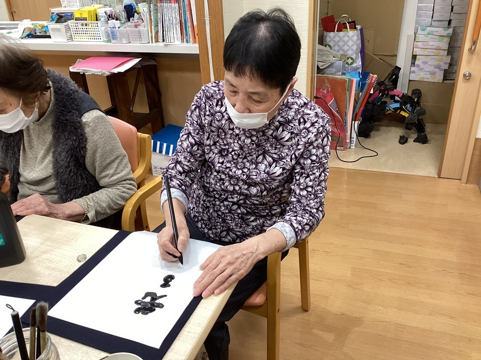 ご利用者は、心を落ち着けながら筆を運び、文字の形やバランスを丁寧に整えられていました。完成した作品からは、みなさまの想いと集中した時間の美しさが感じられました。