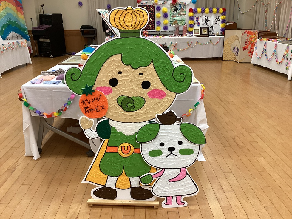 秋の一大イベントである「文化祭」に展示する作品をご利用者と一緒に宇治の人気ご当地ゆるキャラ チャチャ王国のおうじちゃま と うーちゃ をモチーフにした、色鮮やかな フェルト貼り絵 に挑戦しました。