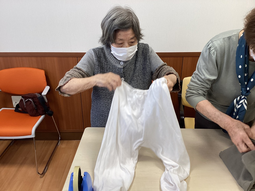 「洗濯工房」では、病院の入院患者さまや、福祉施設に入所されている高齢者の方が出された衣類の洗濯業務を請け負っています。普段から洗濯や家事を経験されてきたご利用者にとって、この作業はとても親しみのある活動です。