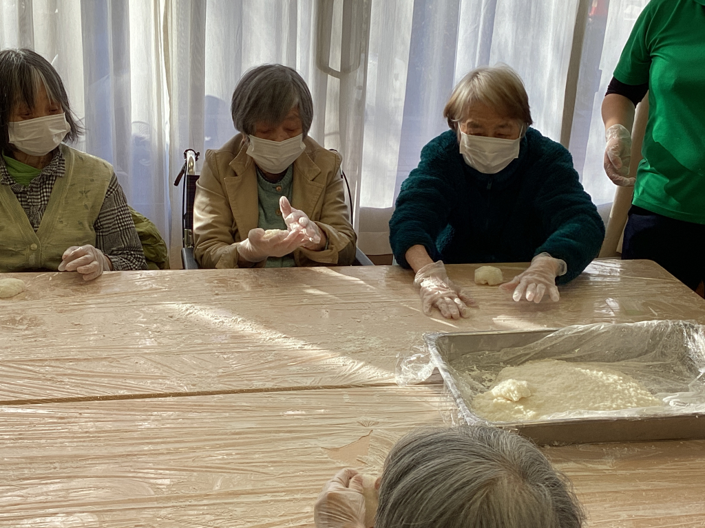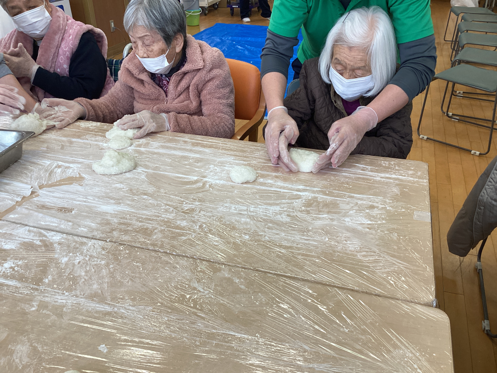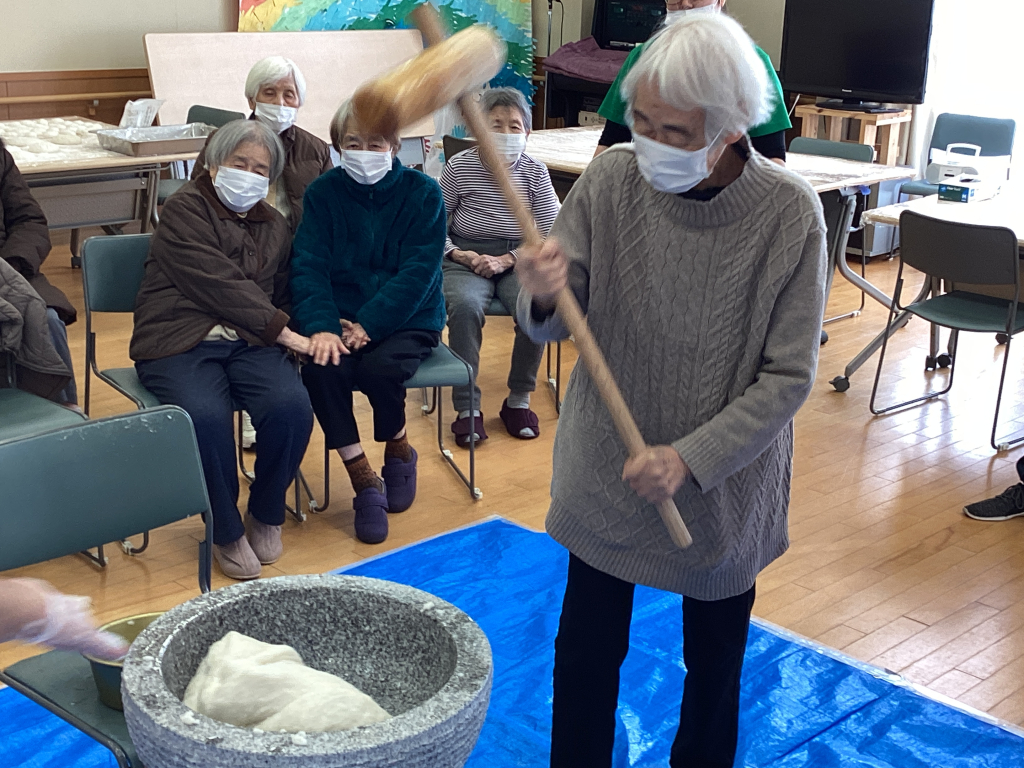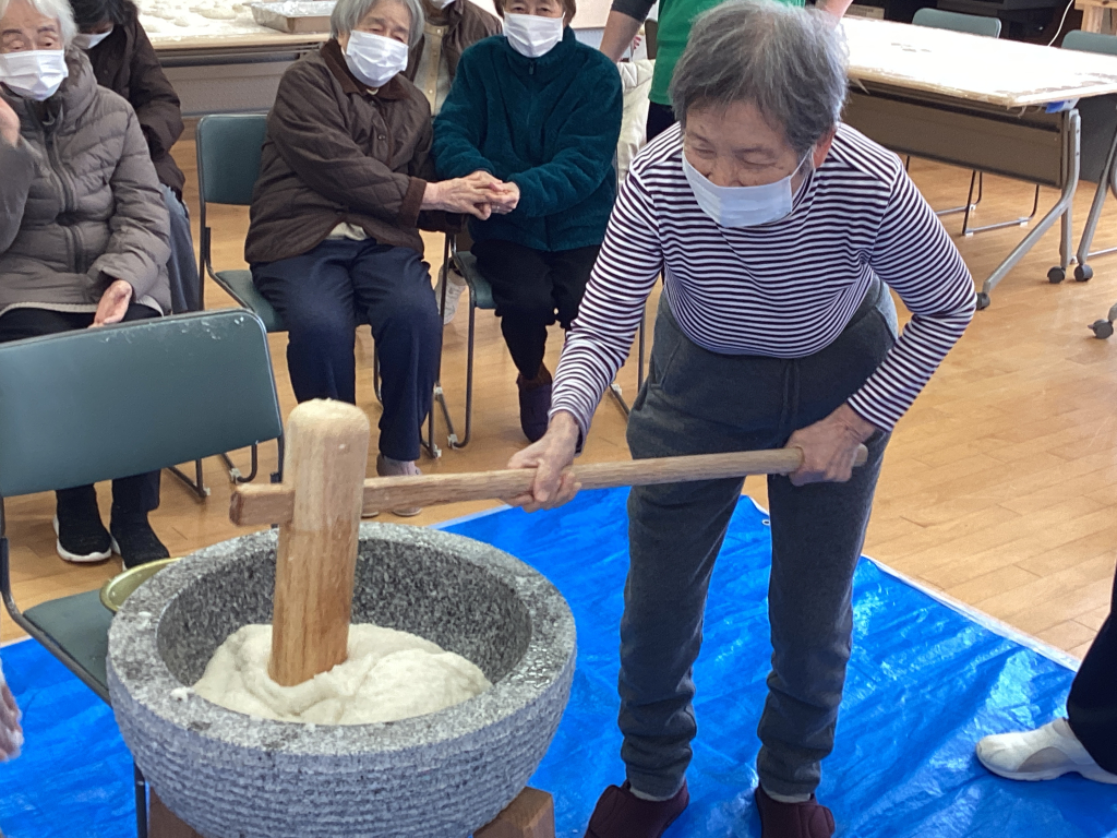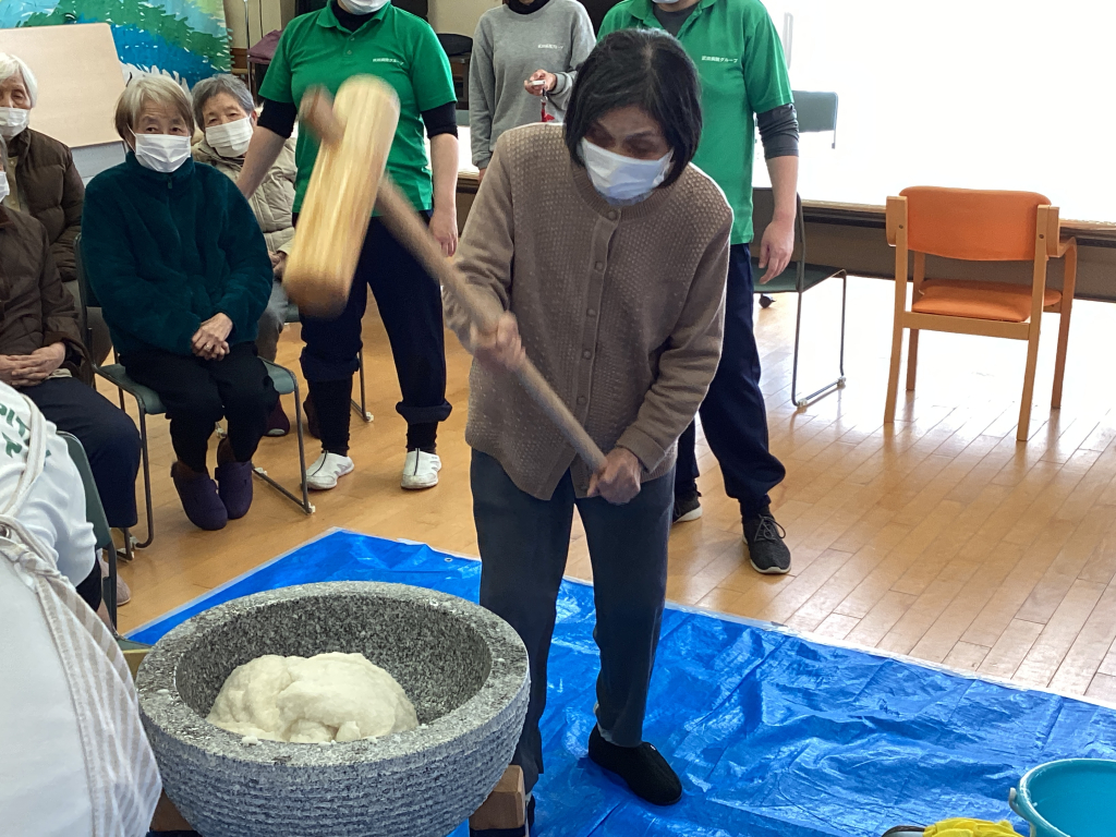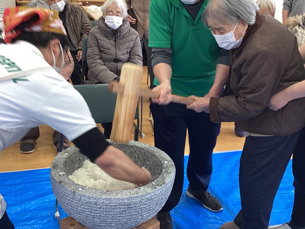 お餅つきを行い、グループホームの入居者様も参加されました。