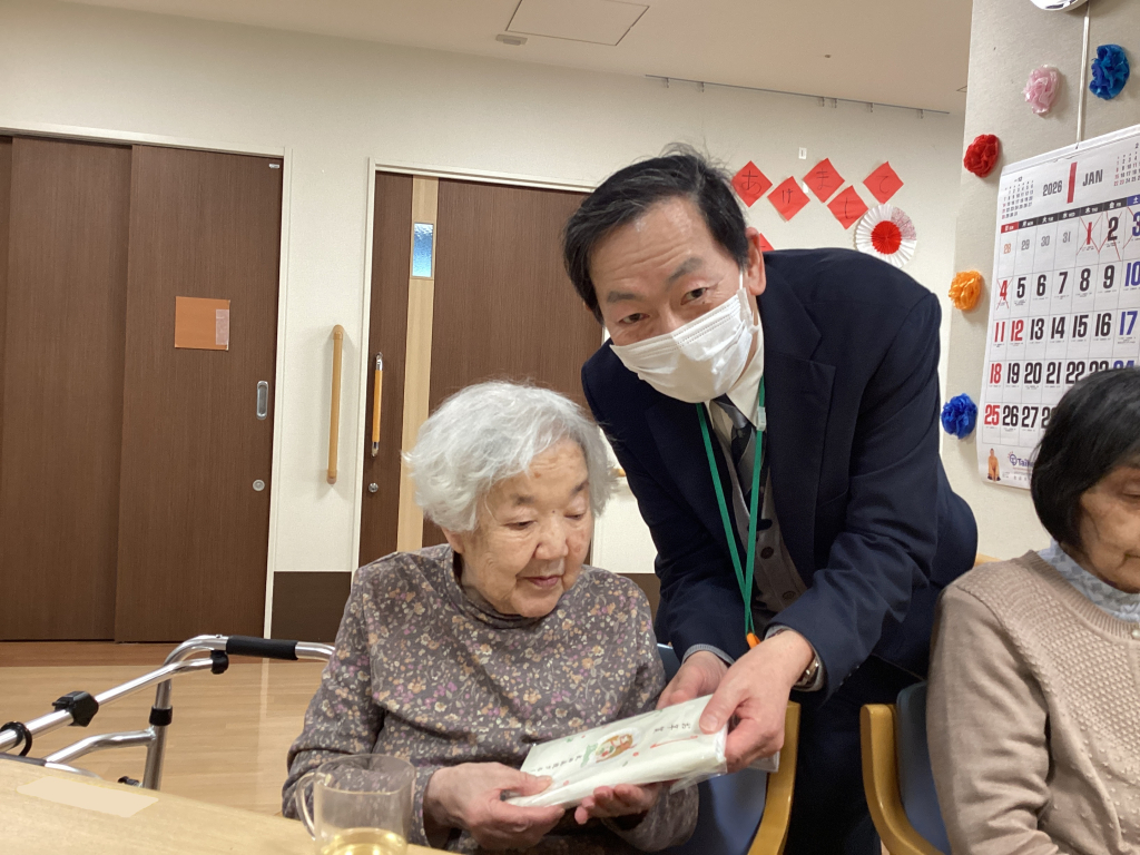1月5日(月)に当法人の理事長よりお年賀タオルの贈呈がありました。