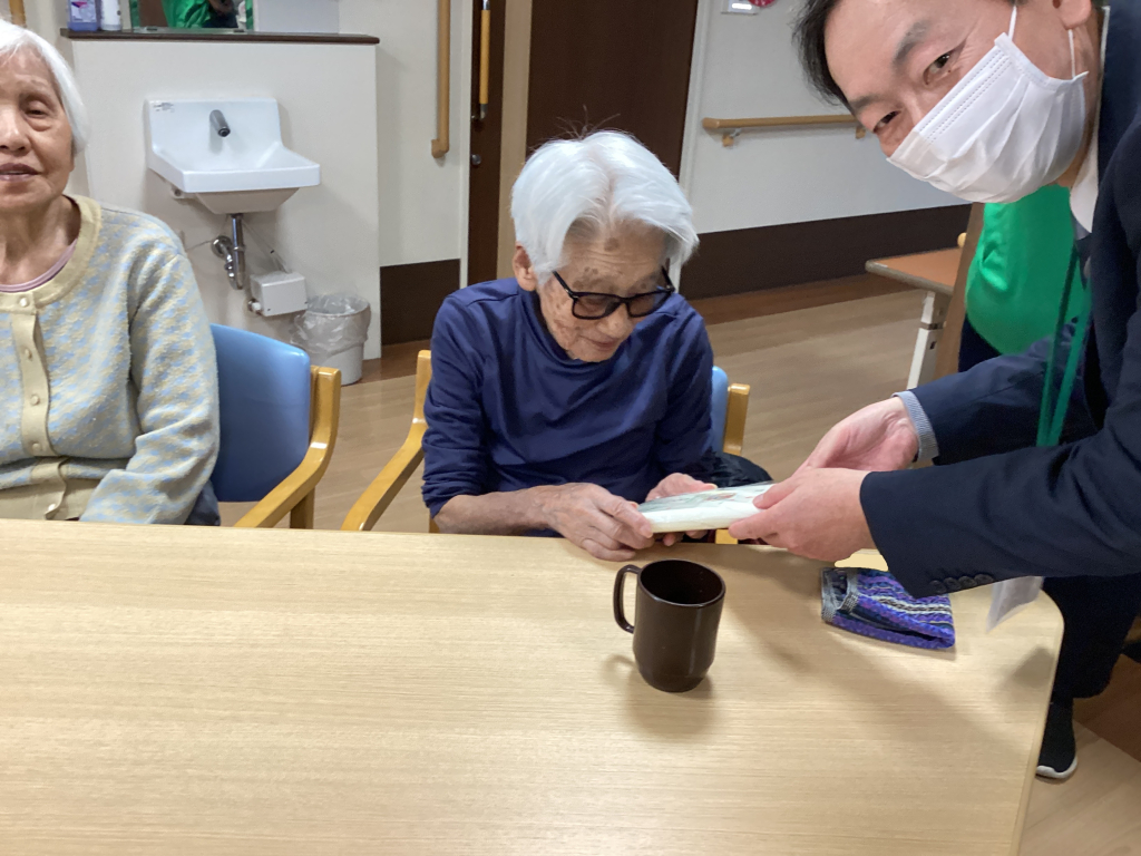 入居者様一人一人に馬の刺繍が入ったタオルを贈呈させていただきました。