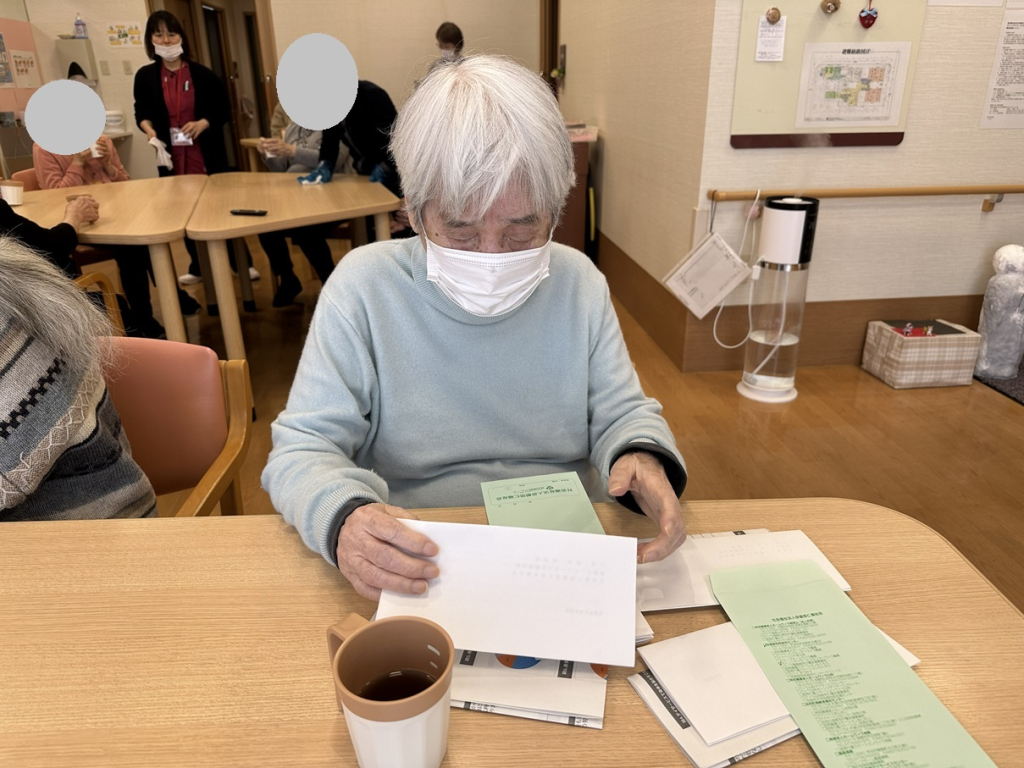 「きれいに入ったかな?」「たくさんあるね」とお話ししながら、和やかな雰囲気の中での作業となりました🌸指先を使う作業は、良いリハビリにもなりますね💡 皆さまのご協力のおかげで、無事に発送することができました📮✨ これからも日々の活動の中で、役割ややりがいを感じていただける機会を大切にしてまいります😊