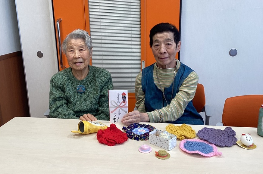 手作り市では、夏と冬にご利用者と職員で心を込めて作った、アクリルたわし・鳥のキーホルダー・クリスマスリースなどを販売しました。