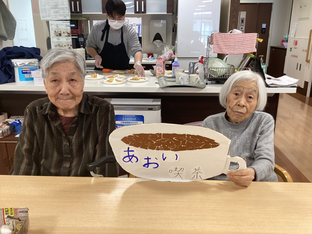 あおい喫茶のPOPと一緒に写真撮影。皆さんいい笑顔でポーズをとってくださいました。