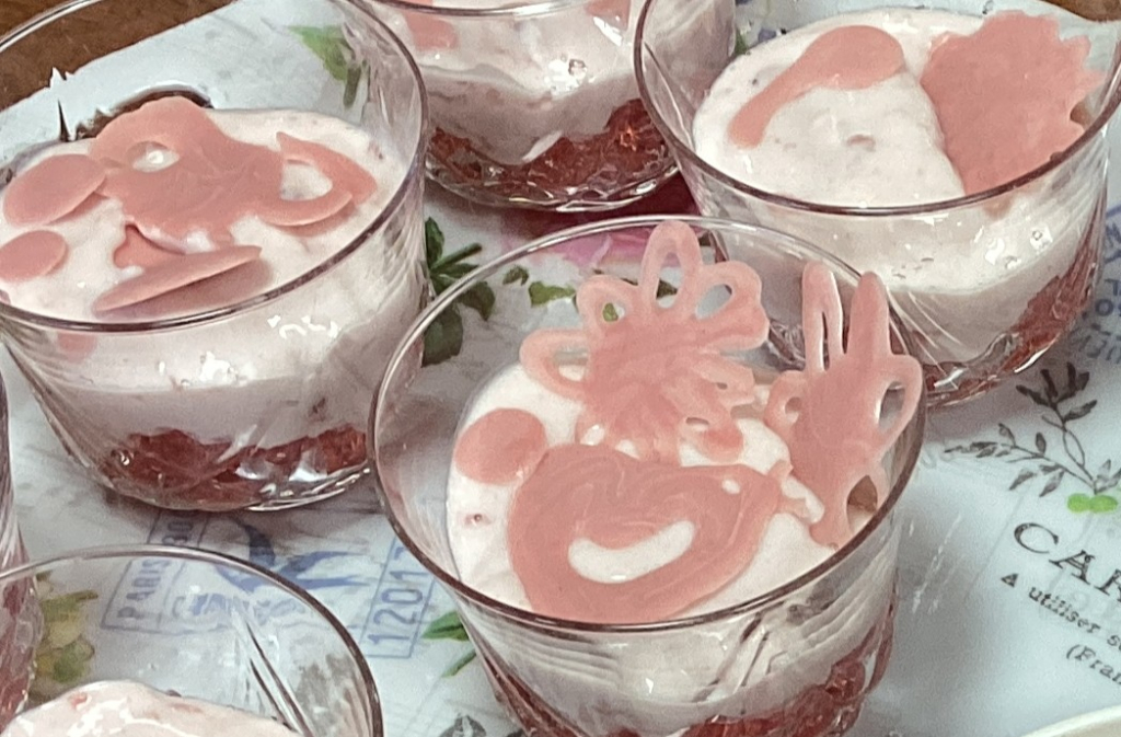 ゼリーの上にフルーチェの重ねた2層仕立て