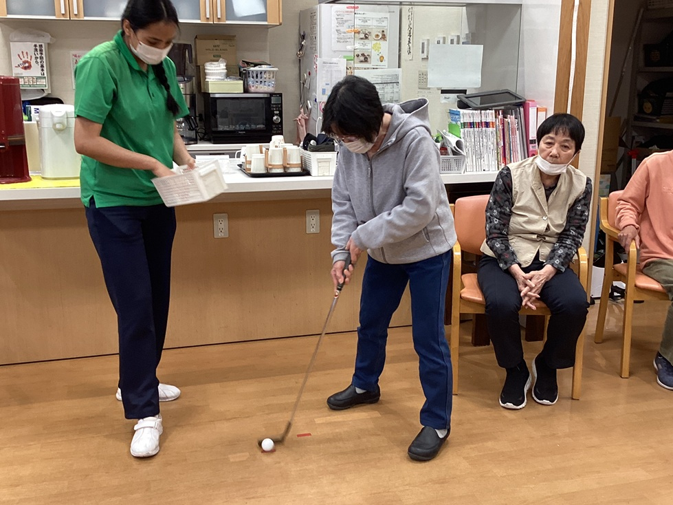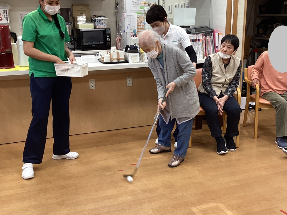 4月15日(水)午後のレクリエーションの時間は、手作りの「パターゴルフ」を楽しみました⛳️