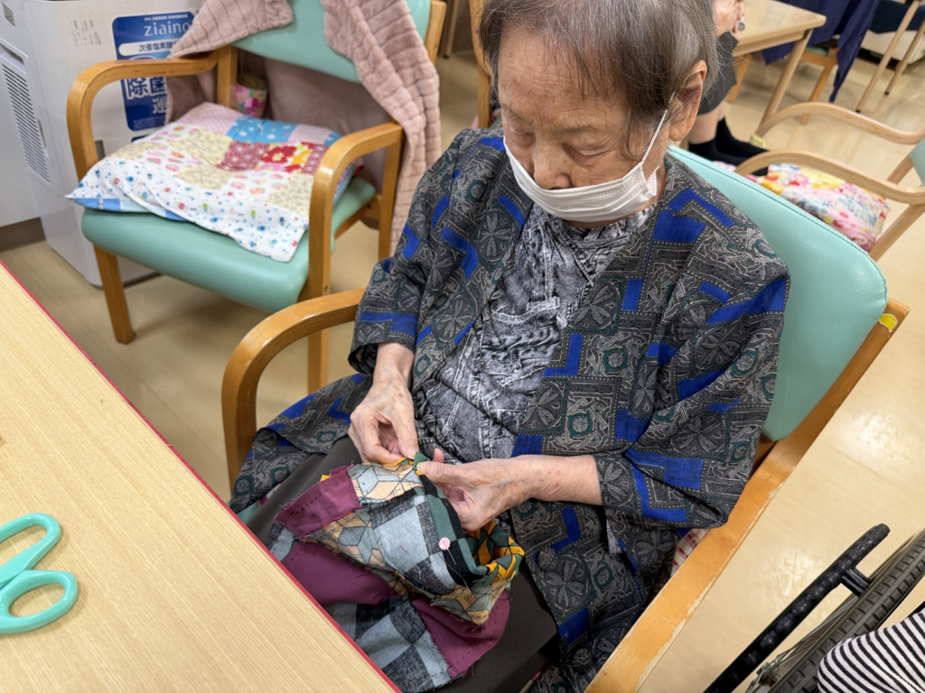 「見てもらうの恥ずかしいわ」と照れながら、皆さん手際よく縫ってくれています。
