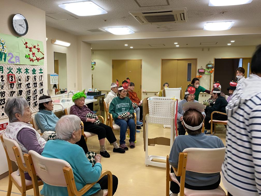 グループホーム鳳凰槇島では、2月3日(火)に、豆の代わりにお手玉を使った「ユニット対抗・お手玉投げ大会」を開催しました。
