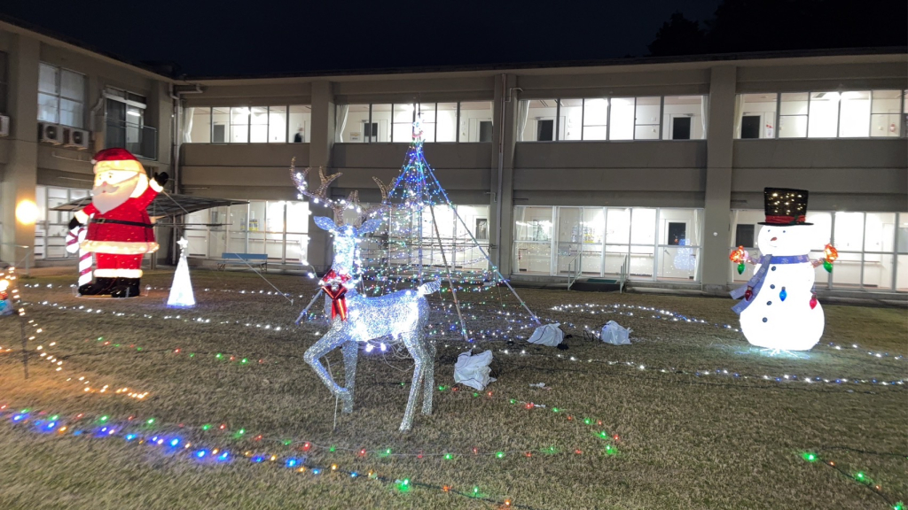 入居者の皆様にお手伝いしていただき、素敵なクリスマスイルミネーションが完成。