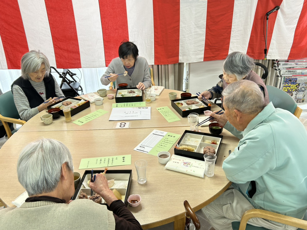 施設長の新年の挨拶のあと、ノンアルコールビールで乾杯して