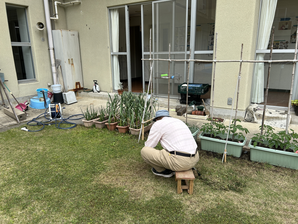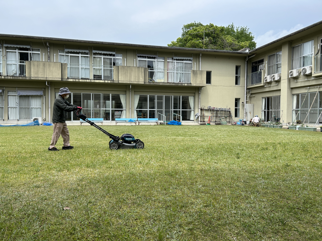 入居者様より、「芝刈りしてあげるよ。」と嬉しい申し出をいただき、中庭の芝刈りをしていただきました。