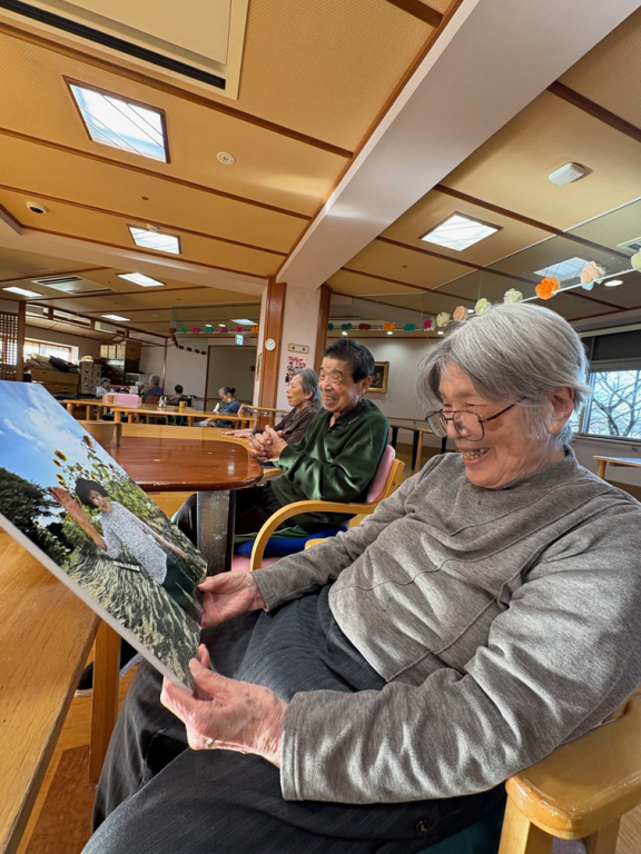 受賞作品を見たご利用者様は…「これ、私かあ?へえ~」と最高の笑顔を見せてくださいました。