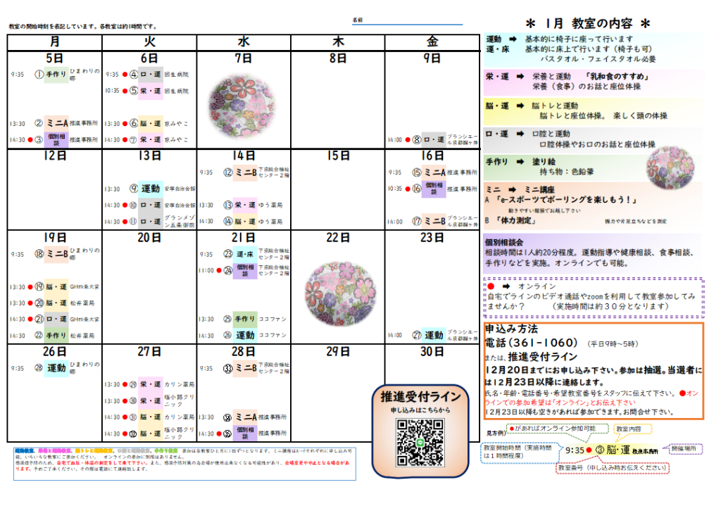 教室のお申込みは全て抽選となり、当選者には後日、連絡させて頂きます。