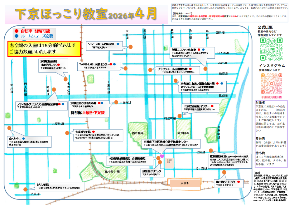 〇 教室参加の際のお茶・水などの水分は必ずご持参ください。