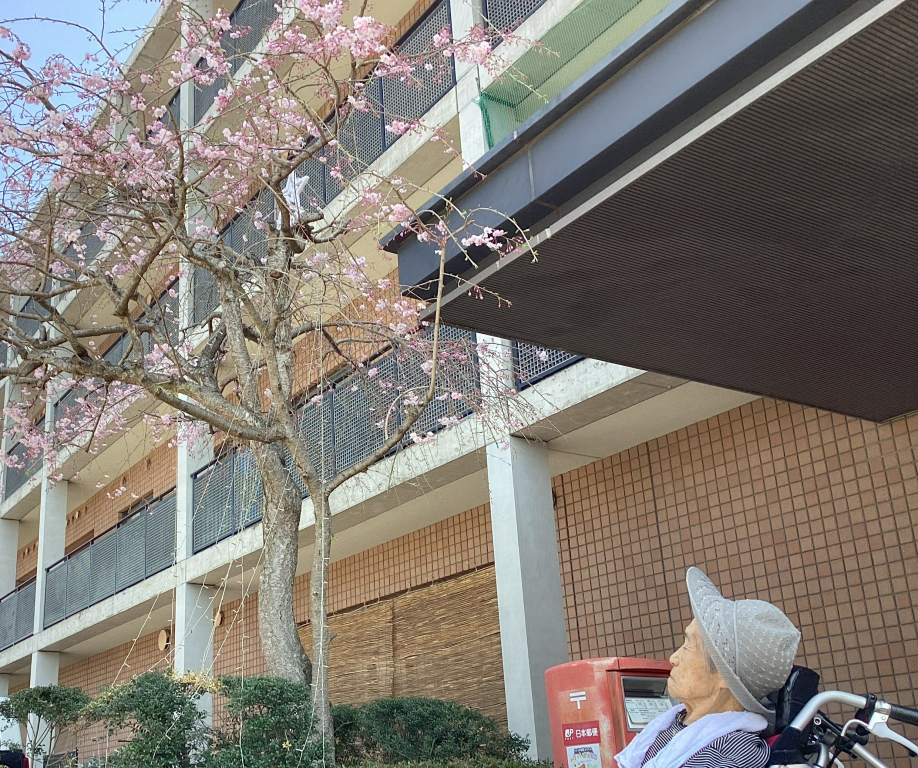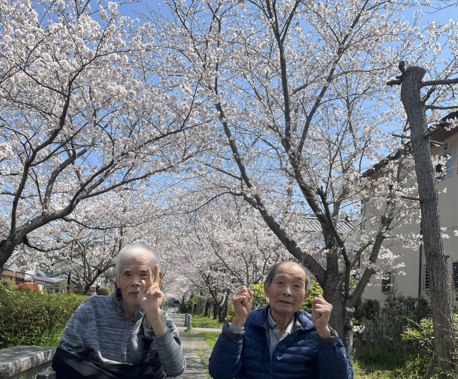 施設周りの桜の木や、近くの御霊神社、駅前にお花見にいきました