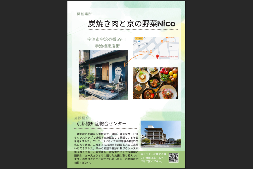 是非、この機会に、京都認知症総合センターのことも改めて知ってもらい、宇治橋商店街の中で、地域の中で、認知症の支援に力を入れようと取り組んでおられる お店のことも知ってもらう機会になればと思います!