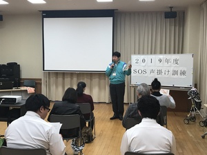 いよいよSOS声掛け訓練を開始。
