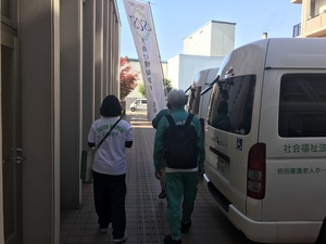 2コースに分かれて利用者役を演じる職員が施設から出かけて行ってしまい、地域を歩いてまわり、今回参加いただいた方々が声を掛ける訓練をしました。