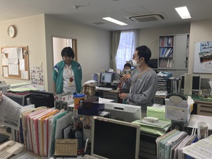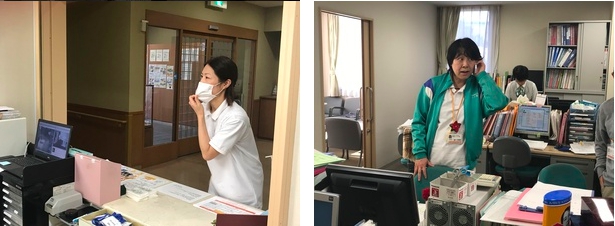 声掛けでは、皆さん講義で習ったことを活かし、声掛け。