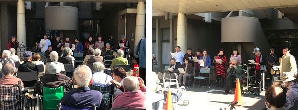 晴天にも恵まれ、屋外にて演奏!懐かしい歌を会場の皆さんも一緒に歌いながら楽しいひとときを過ごしました。