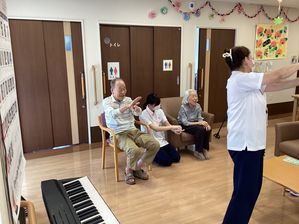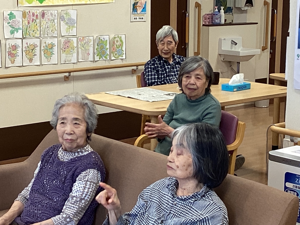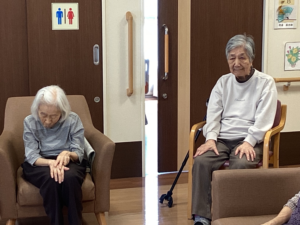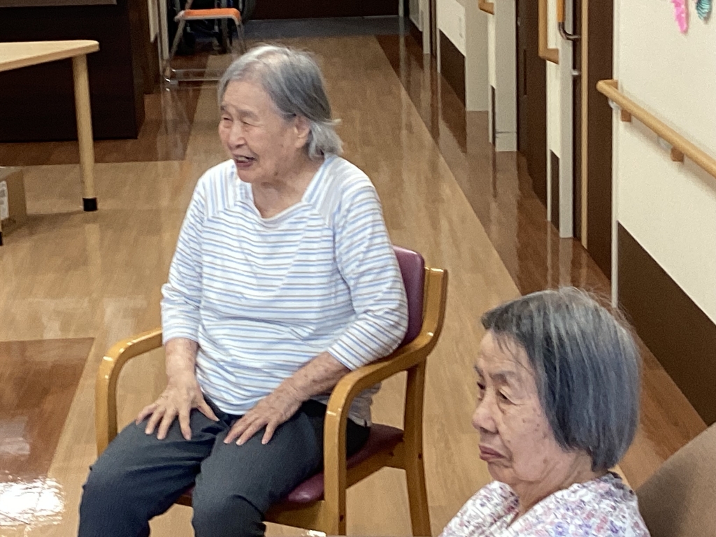 皆さん、フロアにて過ごされる時間が増えており、特に身体を動かすことが多くなりました。ベランダの散歩は日課になっており、喜んで歩いておられます。