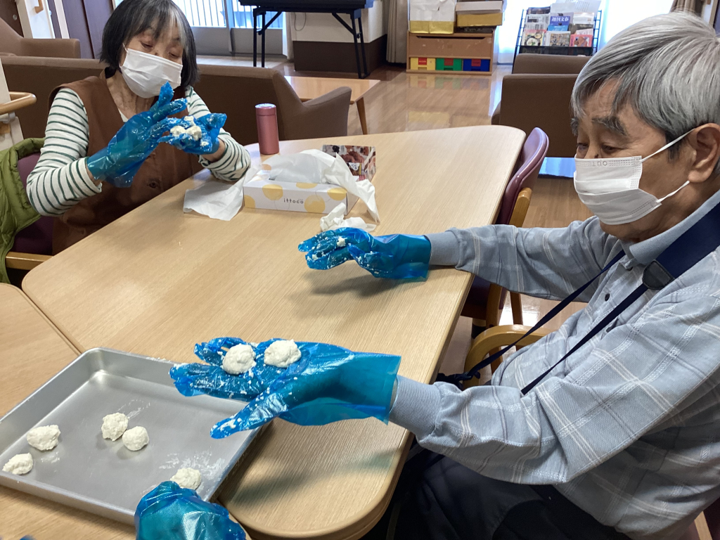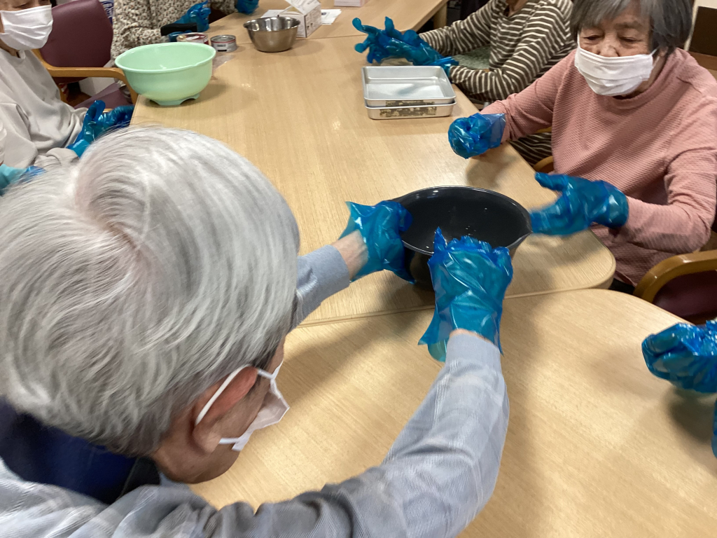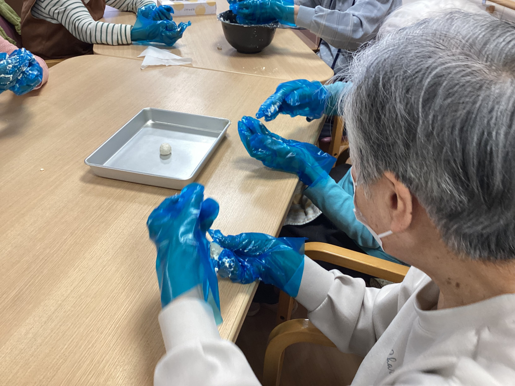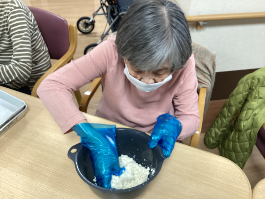 「次、どうぞ」と順番に回しながら、こねておられます。