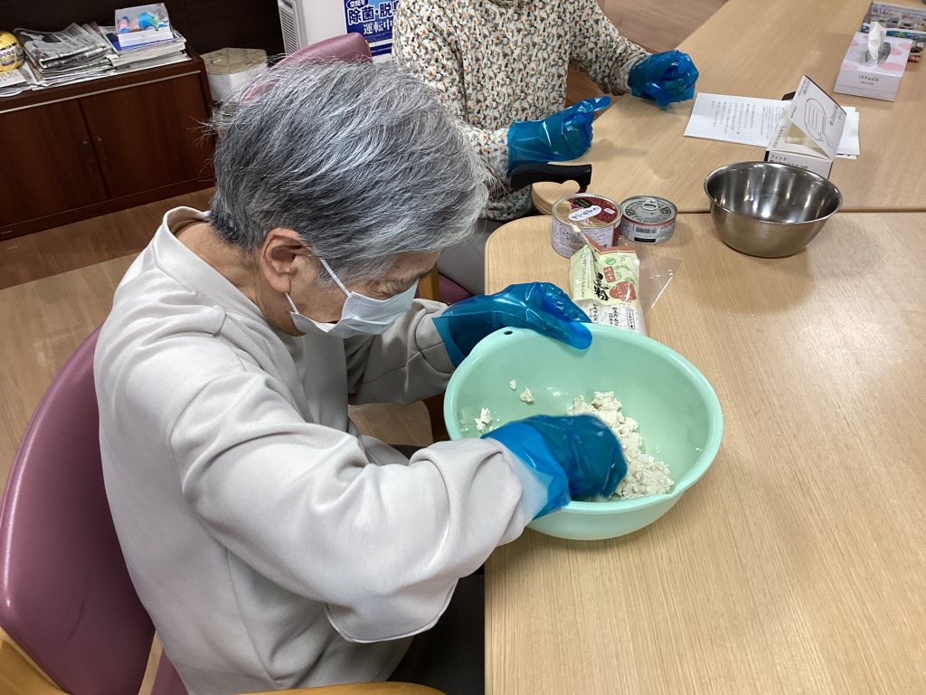 まずは、お豆腐と白玉粉を混ぜていきます。