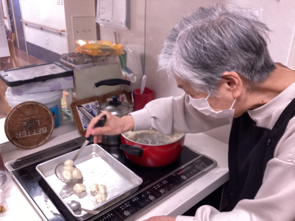 耳たぶくらいの柔らかさになったところで、食べやすい大きさに丸めます。