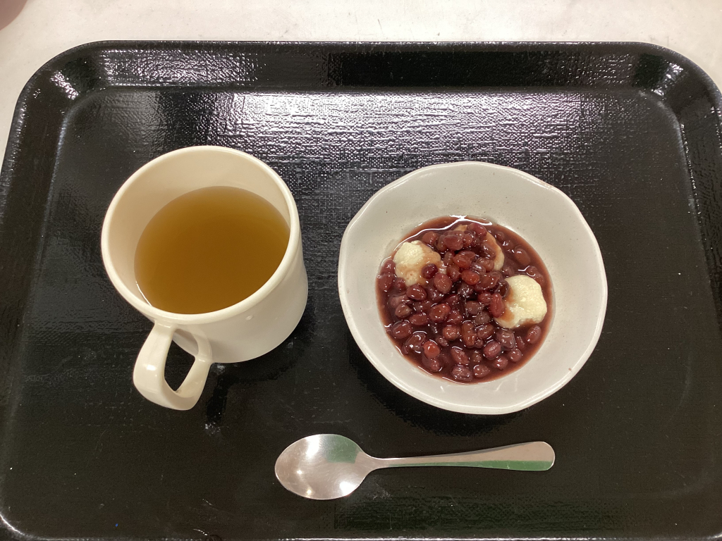 ぜんざいを口に運ぶと