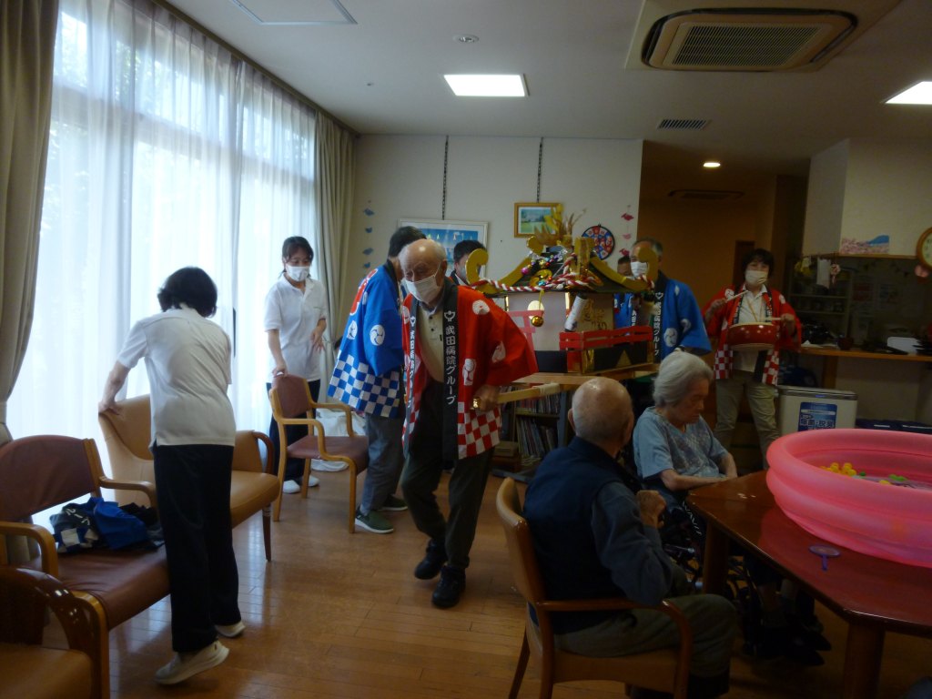 利用者様も一緒にお神輿を担いでもらい、ユニット内を回りました!!