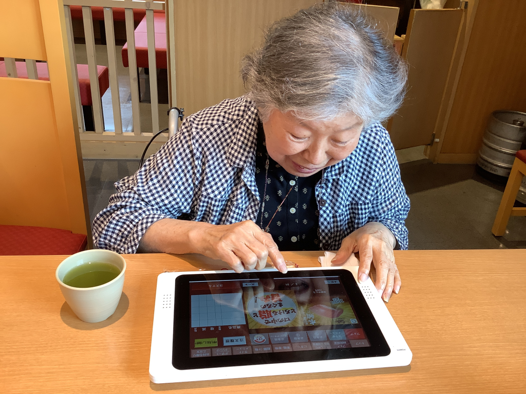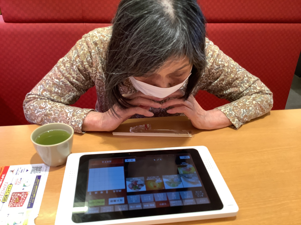 「私何でも食べるで」と、タッチパネルを操作しながら、食べたいネタを選んでおられました。