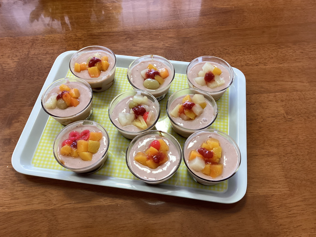 (特養2階)マンゴープリンミックス作りレク