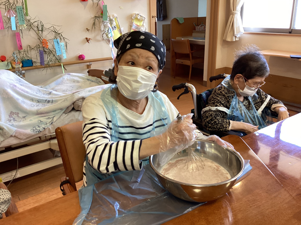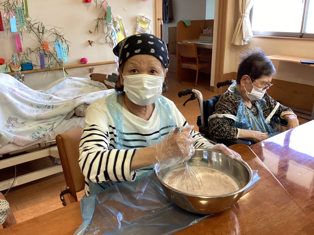 おやつ作りには利用者様にもお手伝いいただきました(^^♪