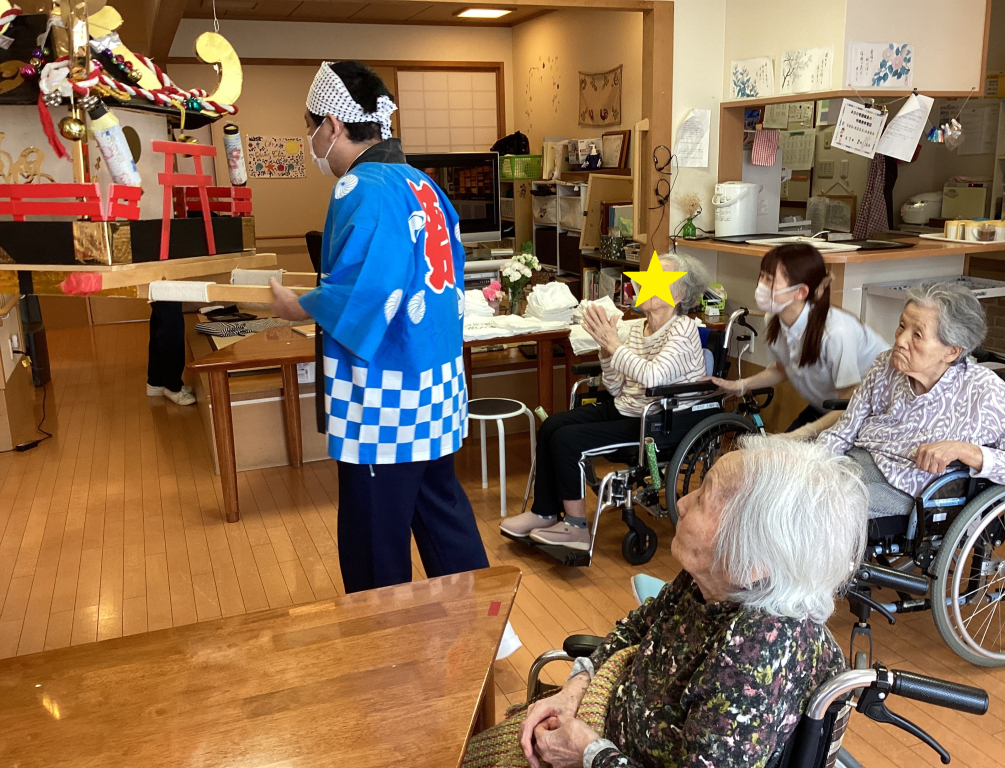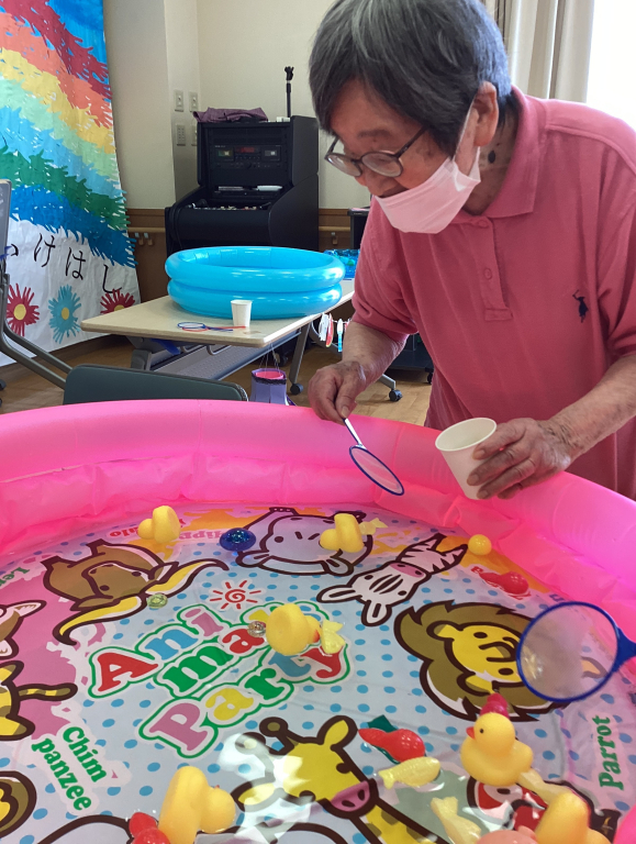 8月26日(火)に1階の交流センターでショートステイの方々と一緒に夏祭りを開催‼