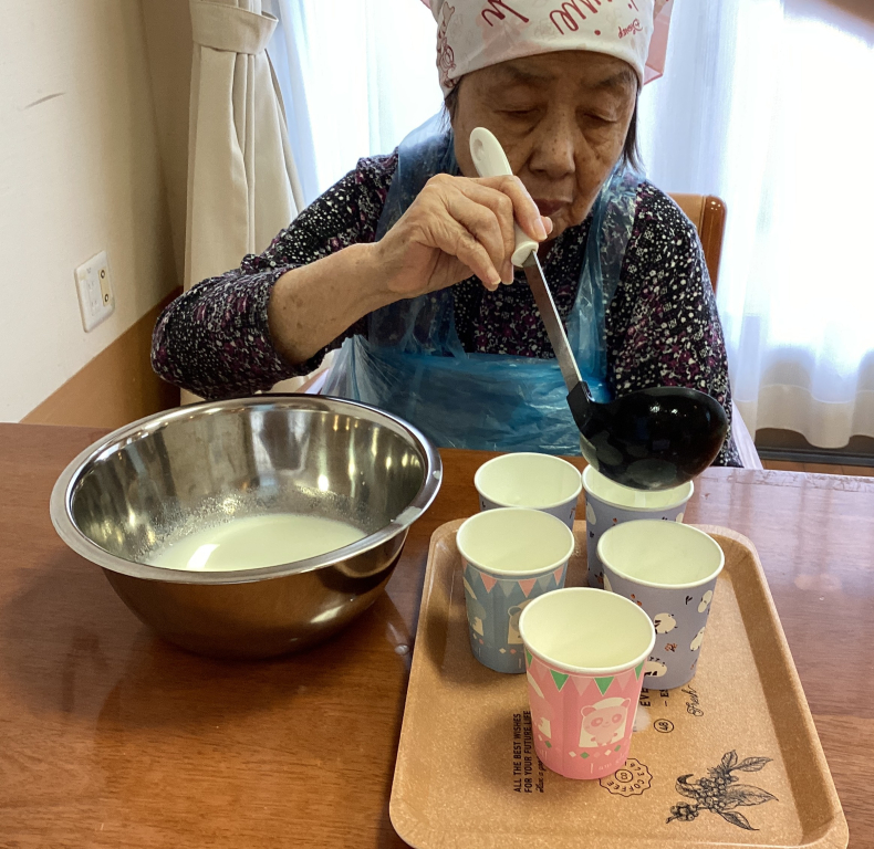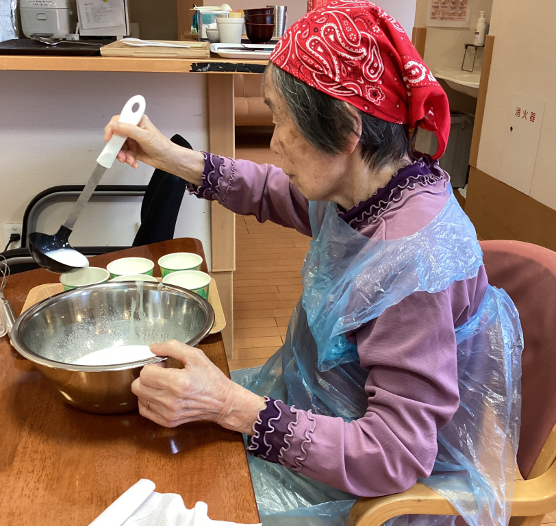 材料の混ぜ合わせ・盛り付けを手伝っていただきました(^^♪