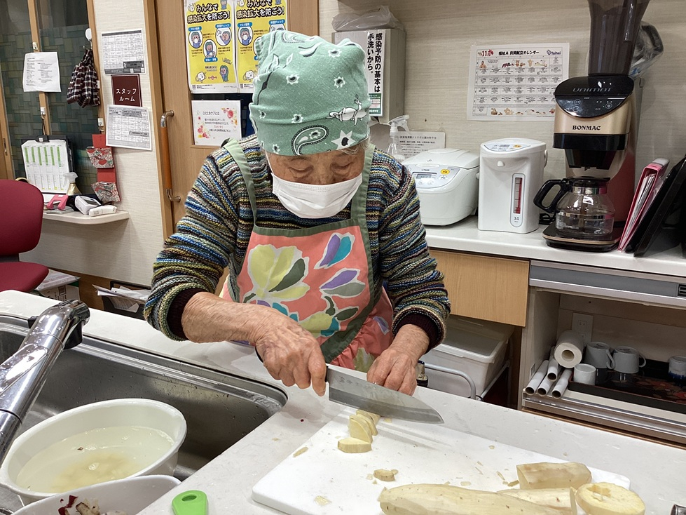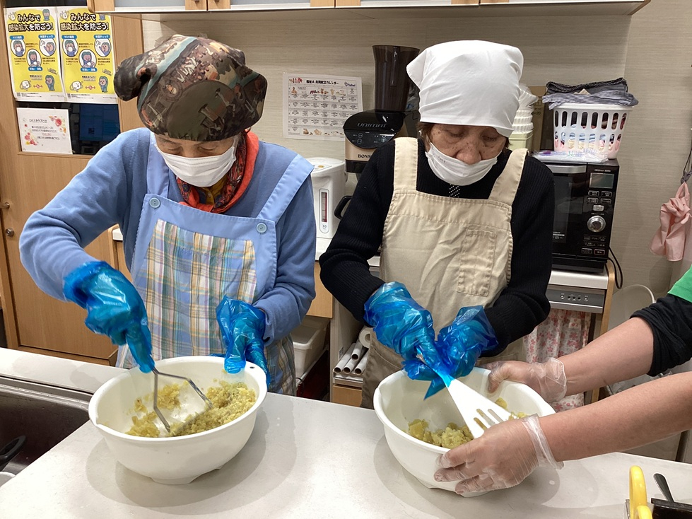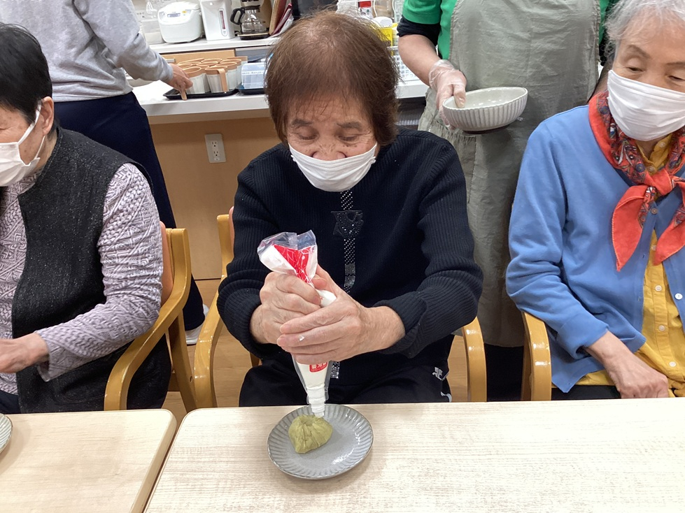 11月27日(木)おやつレクリエーションとして「さつまいもの茶巾絞り」を皆さまと一緒に作りました。