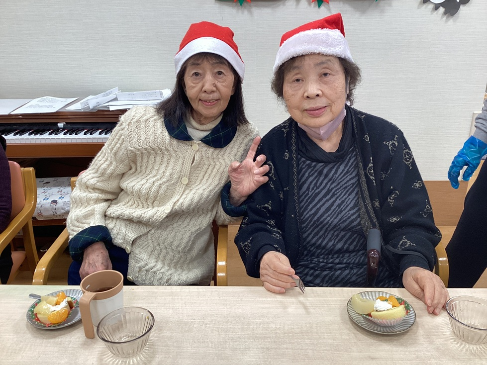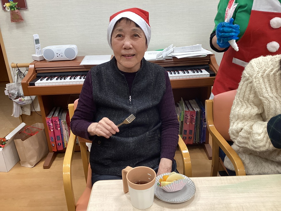 今回のクリスマス会では、音楽や手作りおやつを通して、ご利用者同士の交流や職員とのふれあいがより一層深まり、会場は笑顔と温かさにあふれる1日となりました。普段はあまり声を出さない方も笑顔で参加され、季節を感じながら心豊かに過ごすことができました。ご利用者にとって思い出に残る、心温まるクリスマスのひとときとなりました。