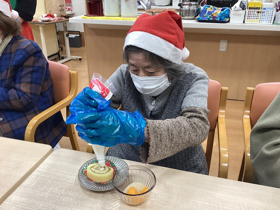 クリスマス会の後半には、おやつの時間として、デコレーションクリスマスケーキをご利用者自身に作って頂きました。