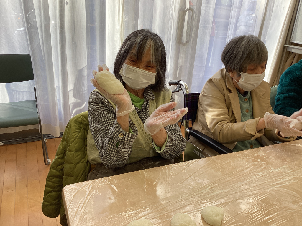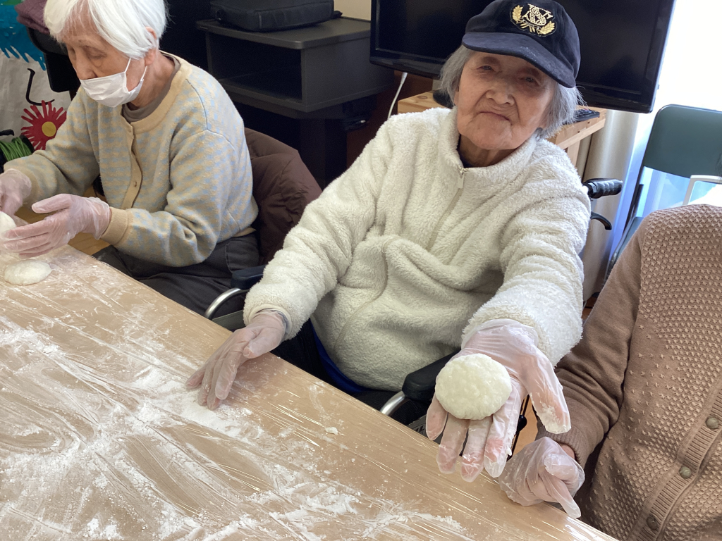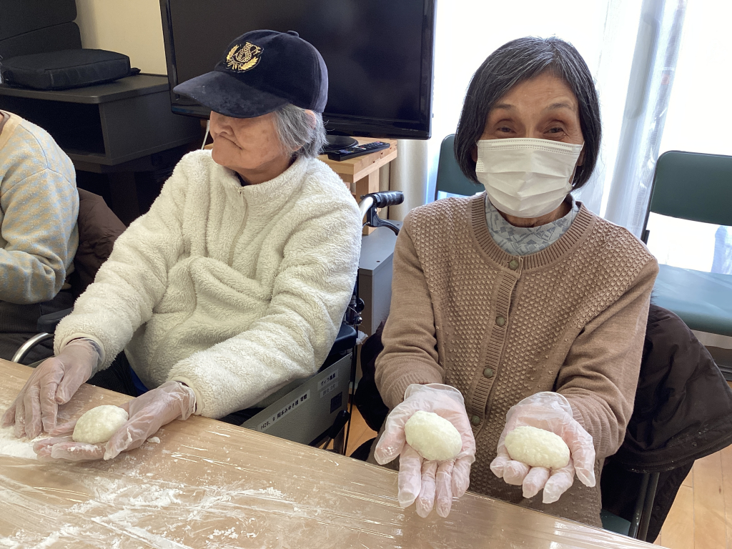 お餅つきを行い、グループホームの入居者様も参加されました。