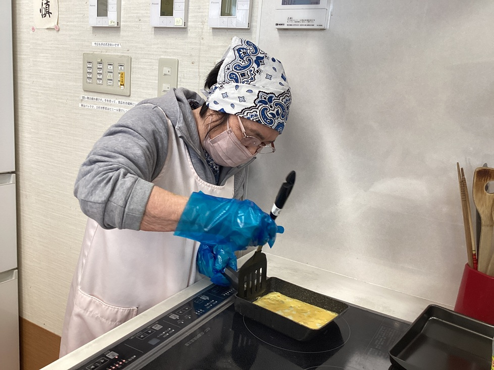 焼き加減や切り方を確認し合いながら、きれいな錦糸卵が完成しました。
